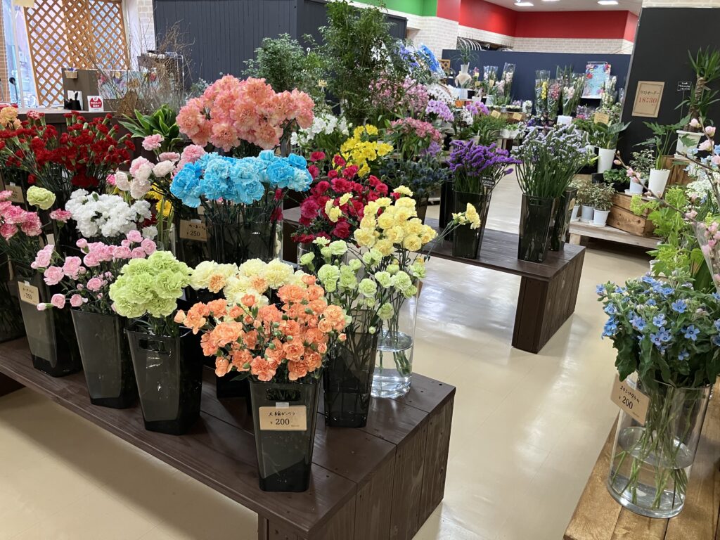 福島駅前東口から徒歩10分のところにある、ダイユーエイトMAX1階に入っている花屋です!!